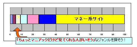 それに加えて、「メジャー」と「マニアック」の中間の「ちょっと目新しい」テーマのサイトがお勧めと言えます。