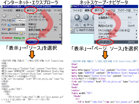 使用しているブラウザによって異なりますが、表示をクリックして新たに出てきたウインドウの中に「ソース」という言葉があると思いますのでそれをまたクリックしてください。