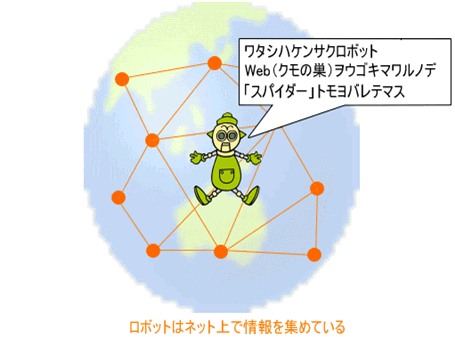 ネット上に公開されているサイトの情報は常に検索ロボットによって集められています。(ロボットと言っても、物質的な姿を持たないコンピュータ上のプログラムですが)